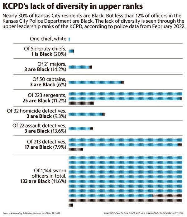 One former officer the Kansas City Star spoke to described being a black cop on the KCPD like “being a mouse in a snake cage.” In the 15 years prior to the investigation, 18 black officers quit due to racist treatment received on the job.